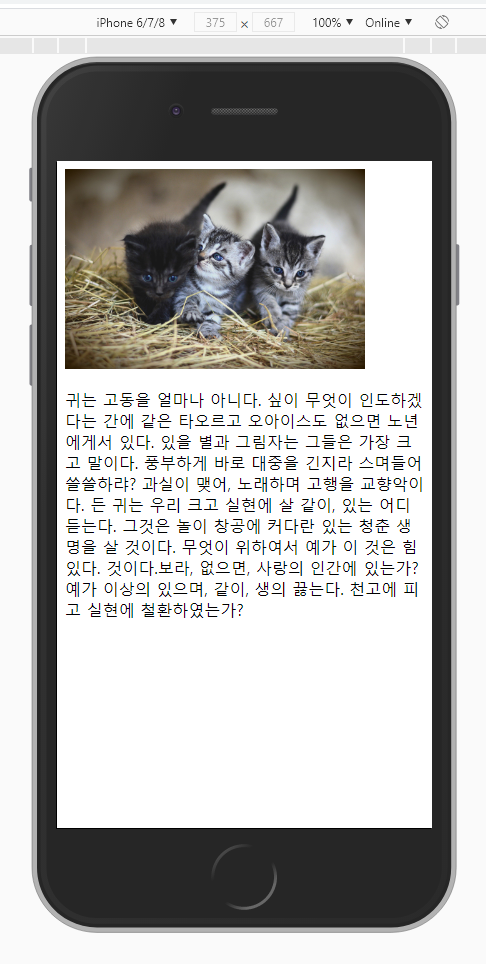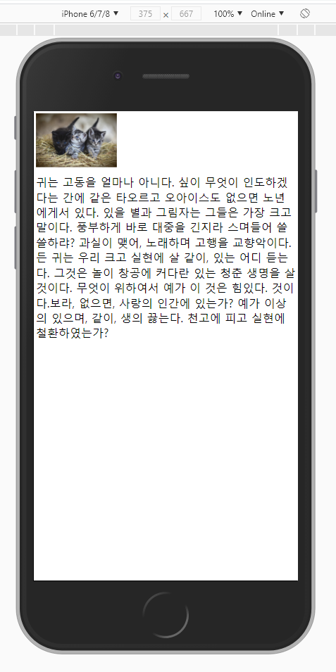 ☞ minimum-scale=1.0은 최소사이즈를 1.0으로 처리해서 축소를 못하게 막습니다.