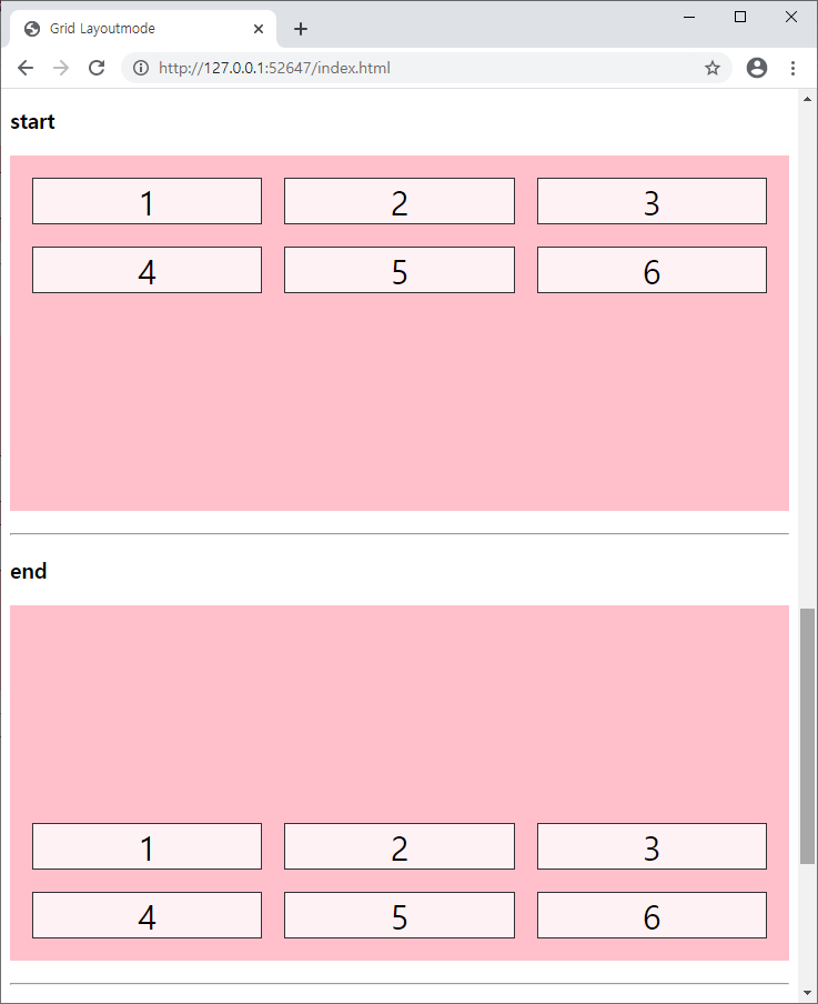- 반드시 한개 이상의 하위 요소를 자손으로 갖고 있어야 grid레이아웃 모드를 적용할 수 있습니다.