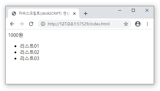 document.write(1000 + '원<br>'); //숫자와 문자 데이터를 연결