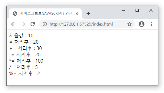 document.write('+= 처리후 : ' + num + '<br>');