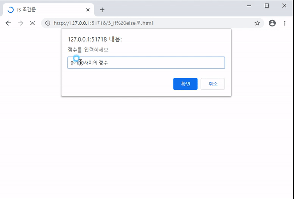 var score = prompt('점수입력','0~100사이 정수입력');