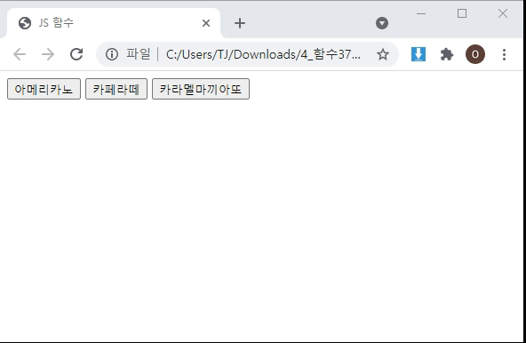 <input type="button" value="카페라떼" onclick="coffee(this.value,'커피빈')">