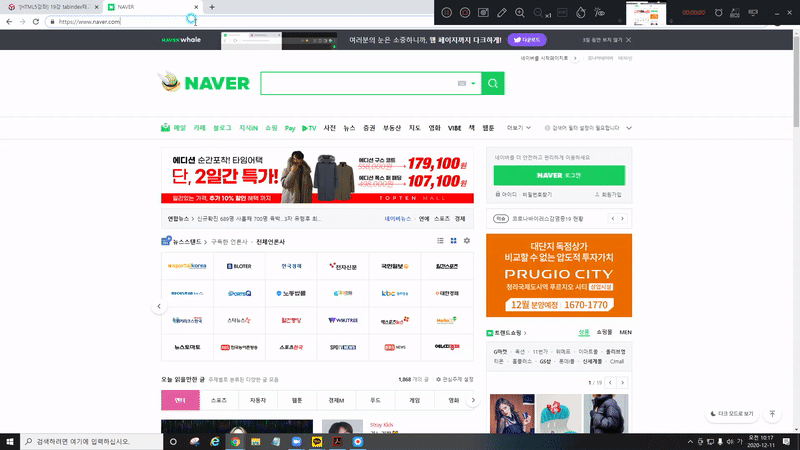 1) 네이버 사이트의 초점이동