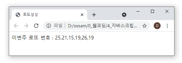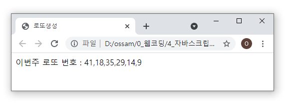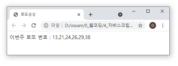 - 랜덤하게 받은 숫자를 lotto라는 값에 6번 추가해서 배열 값을 받습니다.
