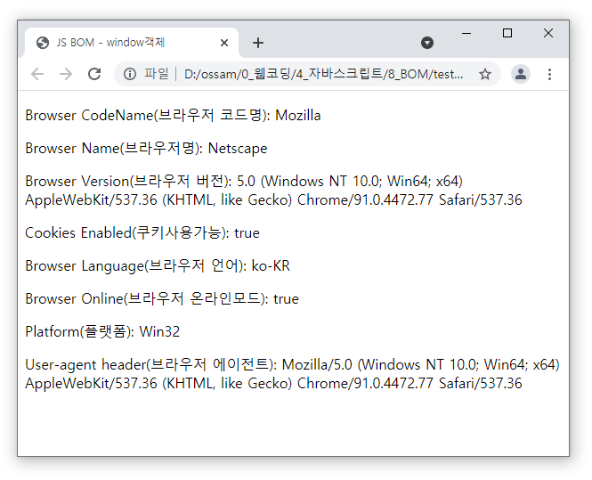 <title>JS BOM - navigator객체</title>