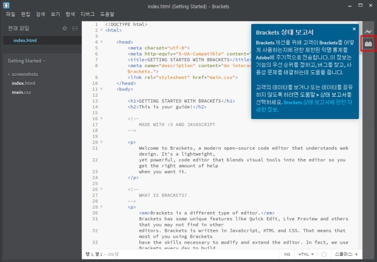 - HTML/CSS/JS 오류시 옆에 전구 모양 아이콘 표시