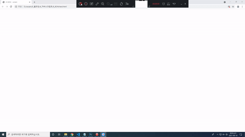 - screen객체는 자바스크립트가 명령을 줄수는 없기 때문에 속성만 갖고 있습니다.