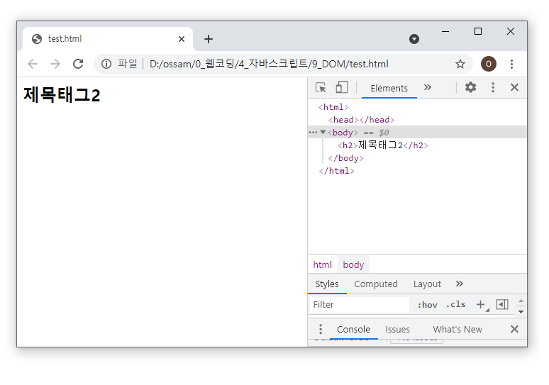 - h1태그가 h2태그로 변경된 것을 확인할 수 있습니다.