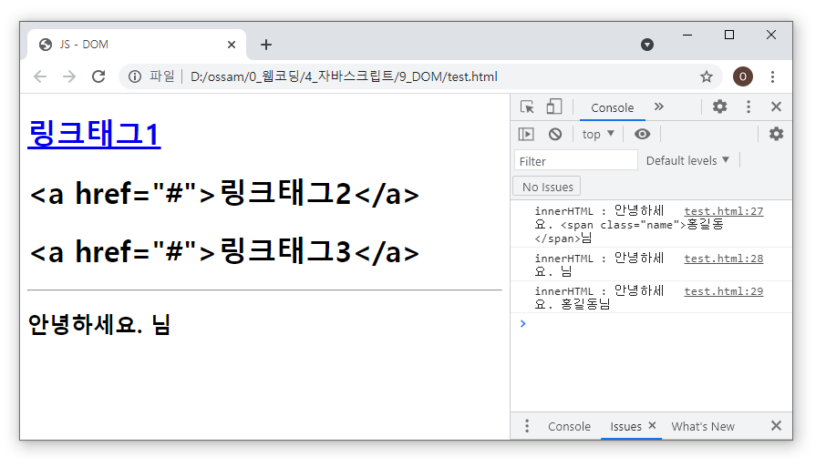 h1Text03.textContent = '<a href="#">링크태그3</a>';