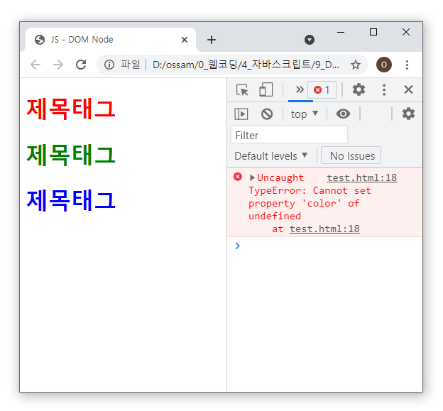 - 색상이 처리는 되지만 에러가 발생되는 것을 확인할 수 있습니다.