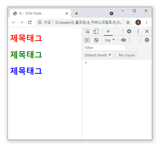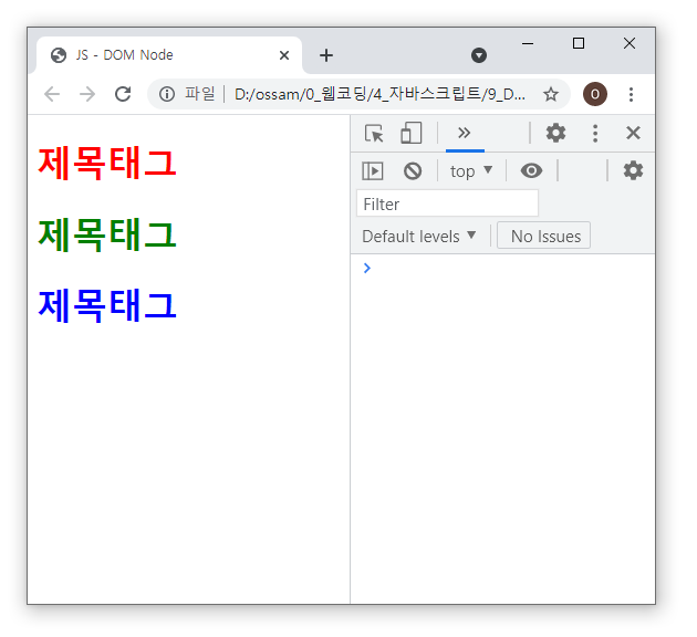 - 요소로 직접적으로 선택하고자 한다면 노드가 아니라 요소로 선택합니다.