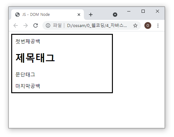 - 요소 사이에는 공백이 발생되면서 그것도 노드로 인식하는 것을 확인했습니다.