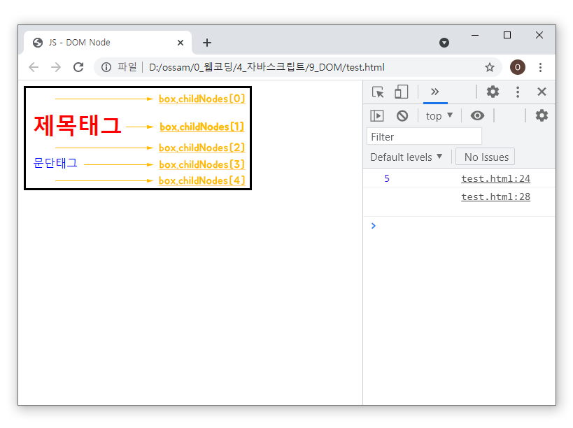 - length속성은 문서객체의 노드에서 공백을 뺀 진정한 노드수만 반환합니다.