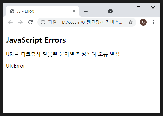 | URIError | encodeURI( )에서 오류가 발생 |