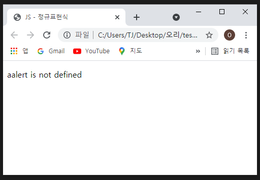 - alert라고 작성했어야는데 aalert라고 작성했습니다.
