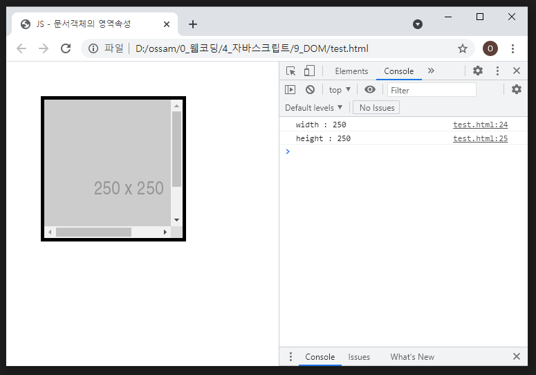 | offsetHeight | border, padding, 스크롤바를 포함한 높이 |