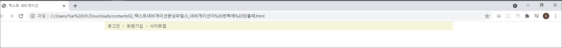- 위에 보이는 상단네비나, 하단네비 같은 것을 텍스트네비게이션이라고 합니다.