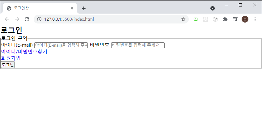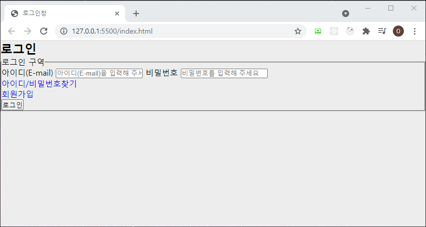 - 스타일은 외부스타일시트를 사용하기 위해 <link> 태그를 작성했고, login.css 를 연결했습니다.