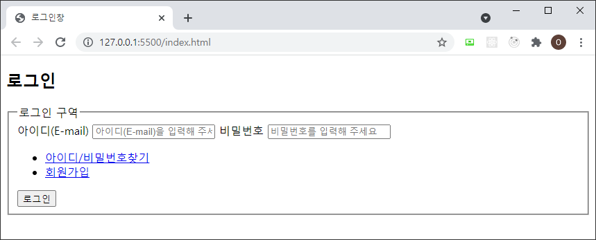- 완성이미지에 보면 사용자입력폼에 설명이 있습니다. [아이디(E-mail)]파트와 [비밀번호]파트입니다.