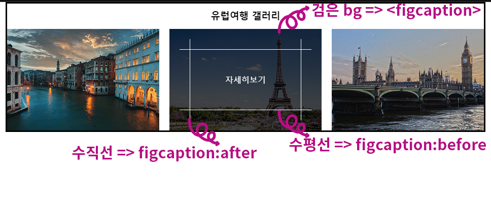 - .gallery figcaption:after{ } 으로 테두리를 새로운 컨텐츠로 생성합니다.