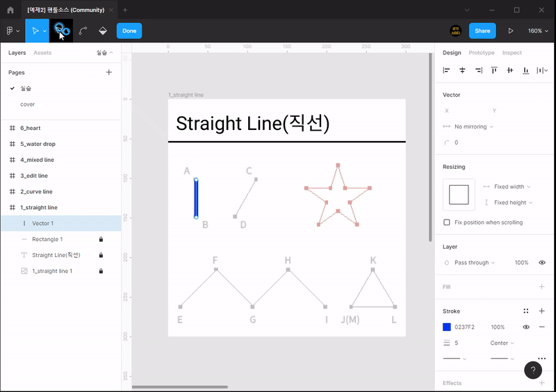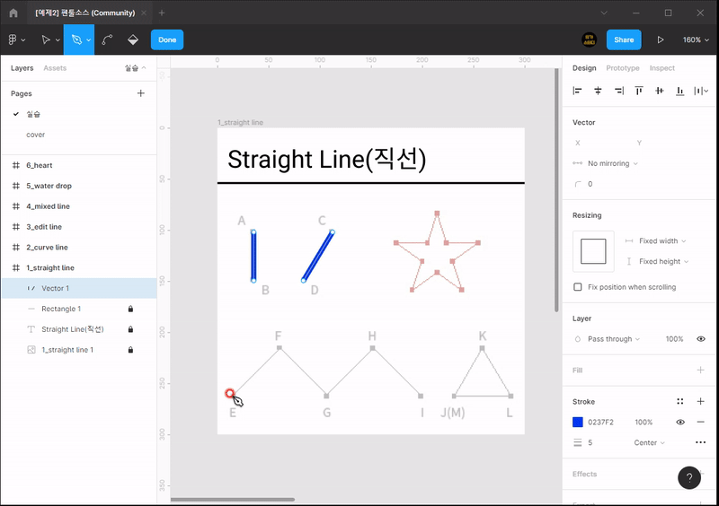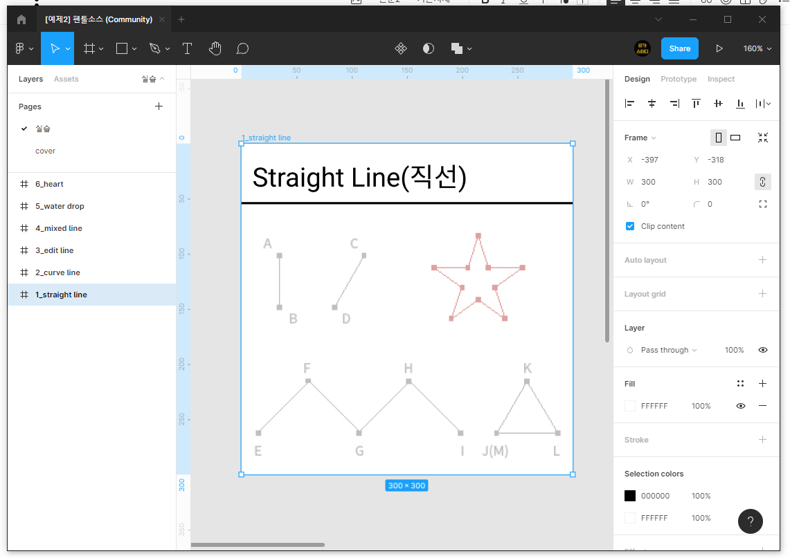 1) [실습]페이지의 [1_straight line]프레임을 크게 확대해주세요.