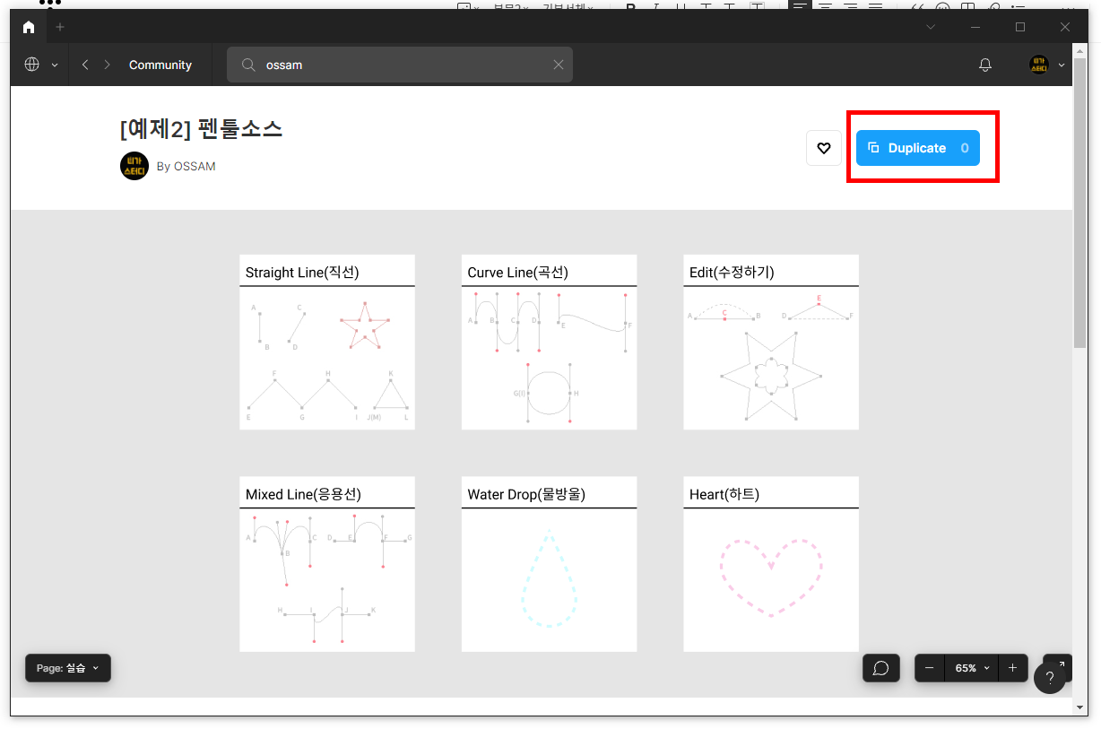 4) [duplicate]버튼을 눌러 개인 작업창으로 복제해옵니다.