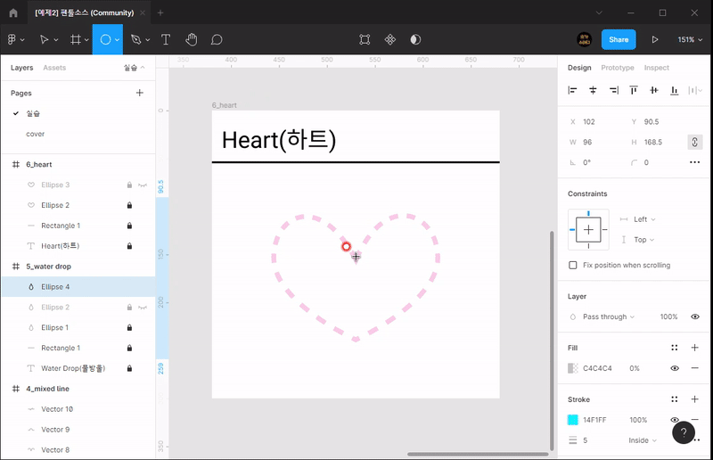 1) [실습]페이지의 [6_heart]프레임을 중점으로 크게 확대해주세요.