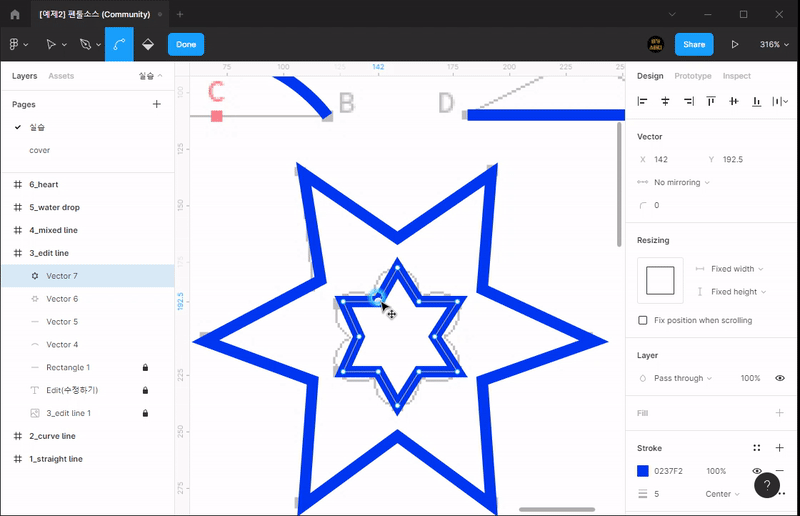 - 다섯번째 [done]버튼을 누르면 펜툴 수정이 완료되고 원래 툴로 돌아가게 됩니다.