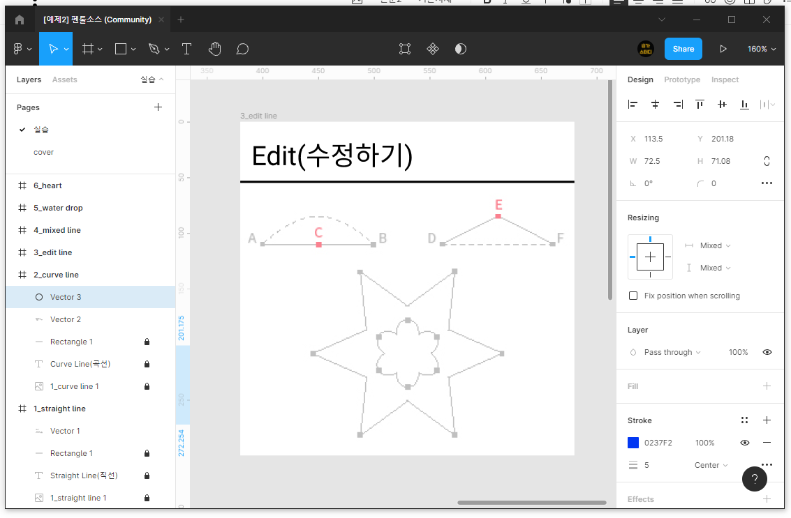 1) [실습]페이지의 [3_edit line]프레임을 중점으로 크게 확대해주세요.
