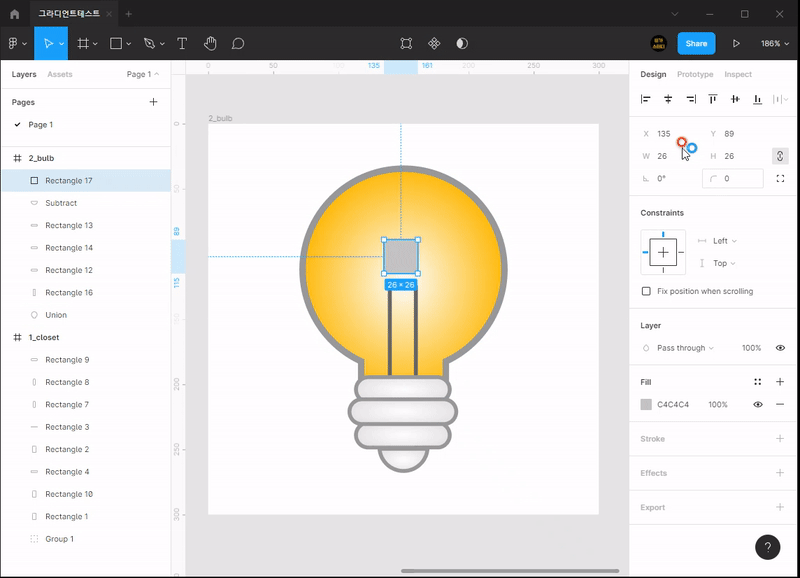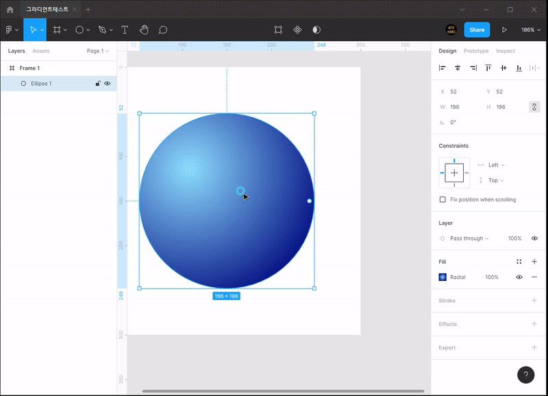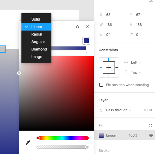 - 피그마는 4가지 그라디언트를 지원합니다.
