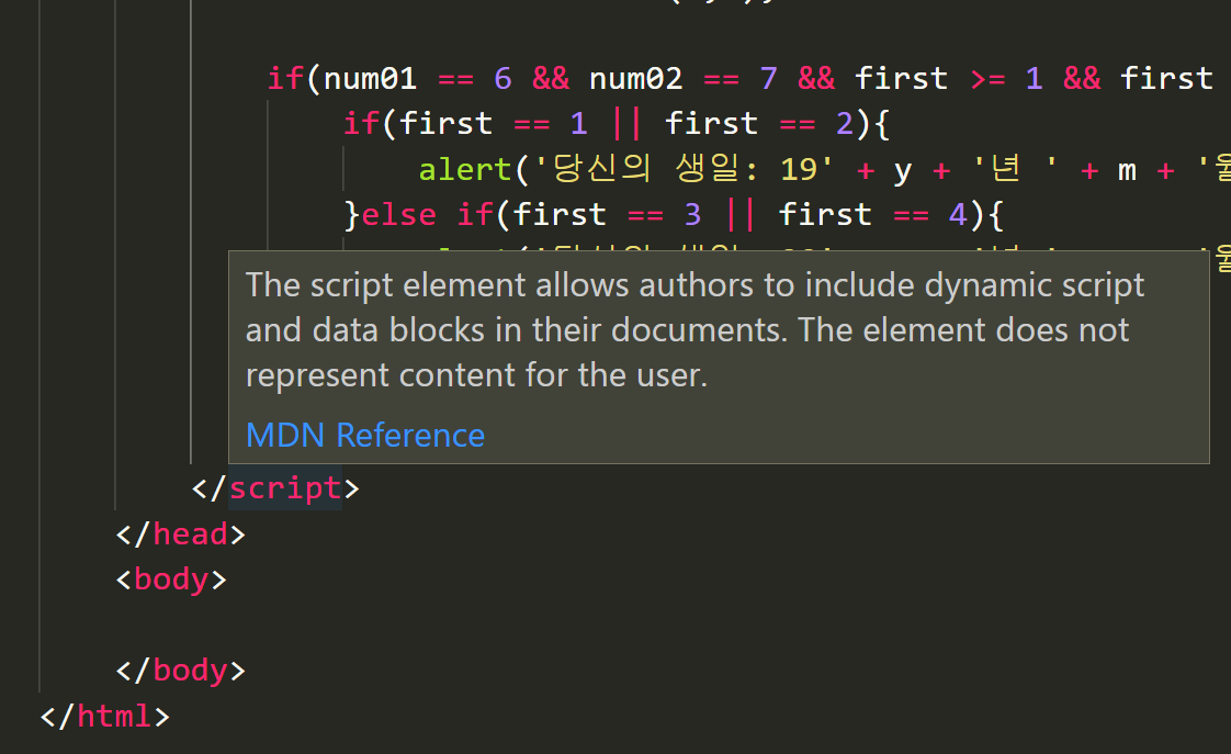 - VS CODE를 쓰다보면 태그나 코드에 마우스를 올리면 자꾸 설명해주려고 뜨는 창이 있습니다.