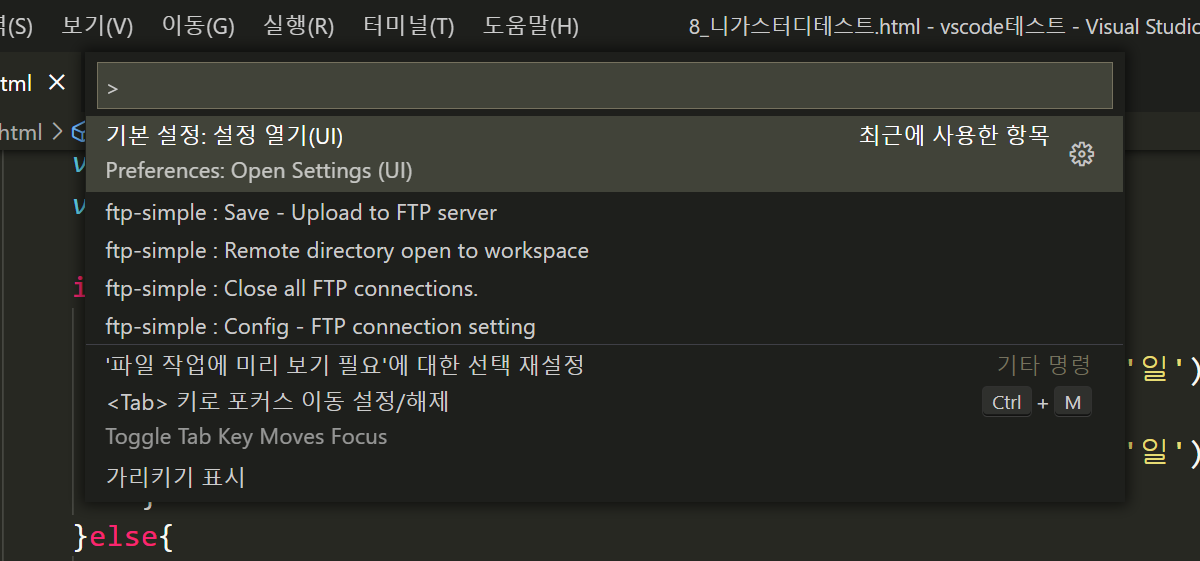 2. 검색창에 [setting]이라고 검색한 후 [Open Settings(UI)]를 클릭합니다.