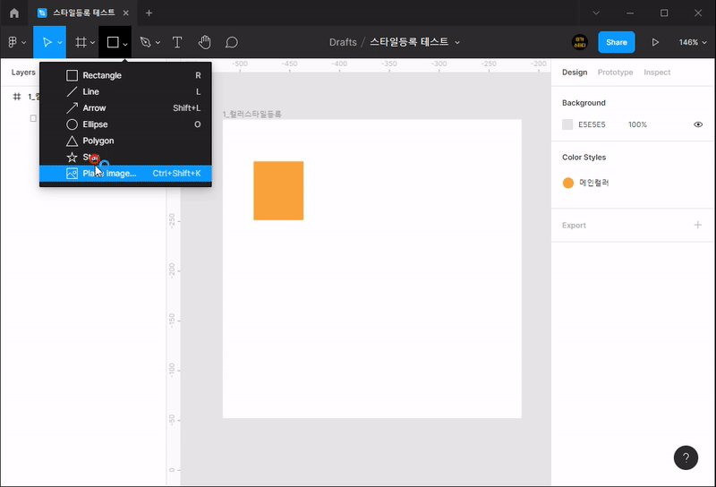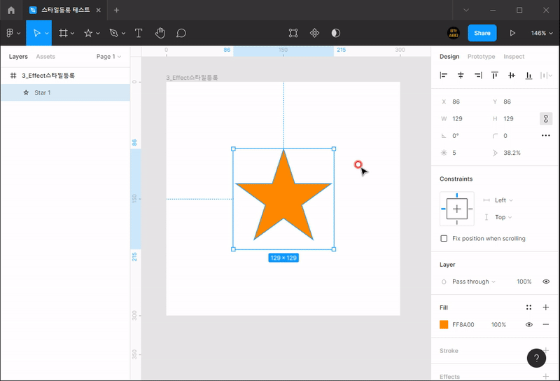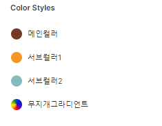 - 디자인패널의 [Fill]옆의 [::]아이콘을 눌러 등록되어 있는 색상을 적용합니다.