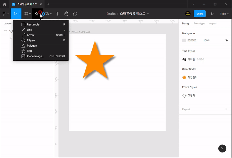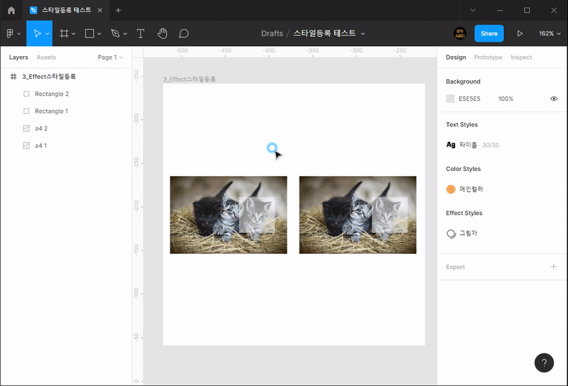 - 효과 등록은 [Effects]옆의 [::]아이콘을 눌러 스타일을 적용합니다.