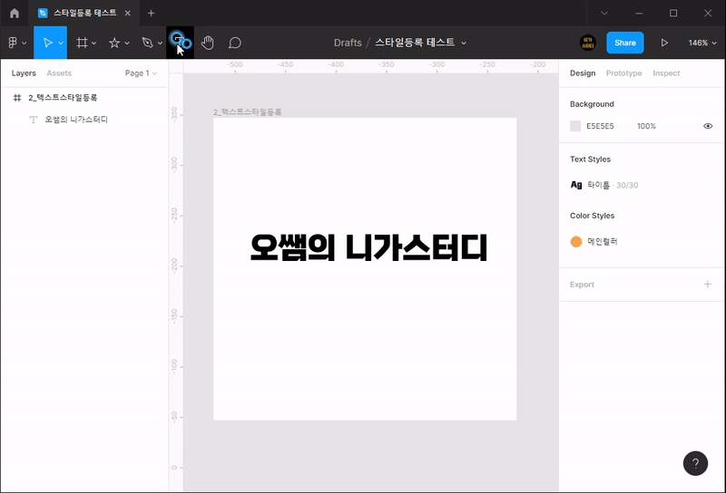 - 디자인패널의 [Text]옆의 [::]아이콘을 눌러 등록되어 있는 글꼴을 적용합니다.