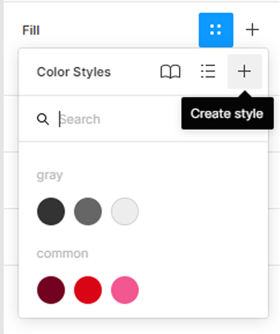 - 색상 등록은 [Fill]옆의 [::]아이콘을 눌러 [+]버튼으로 등록하면 됩니다.