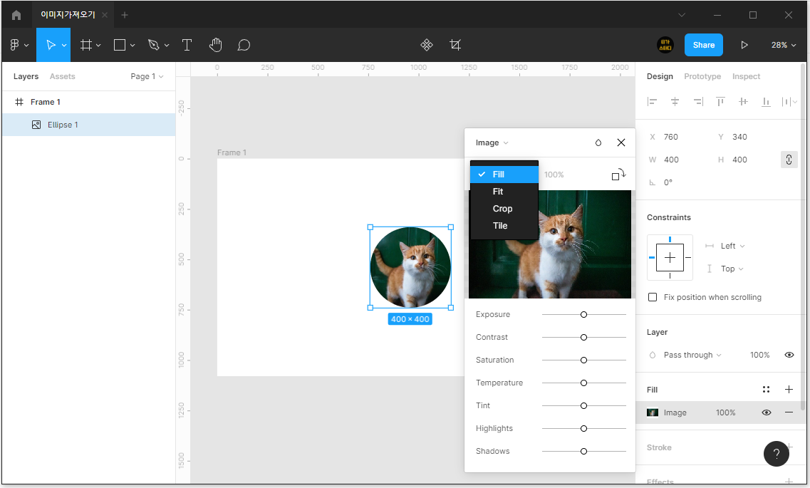 6) 도형에서 색변경 카테고리에서 이미지로 변경