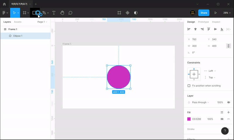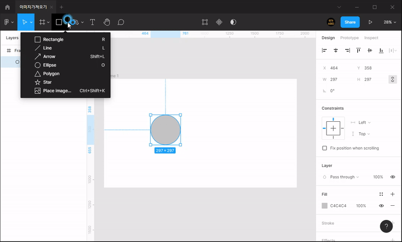 - 일단 원형 도형을 그립니다. 이것이 마스크영역이 됩니다.