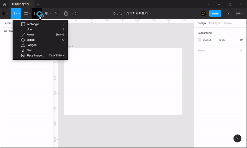- 사각형툴을 꾹 눌러서 보면 맨 아래 [place image]를 눌러 클릭해주면 나옵니다.