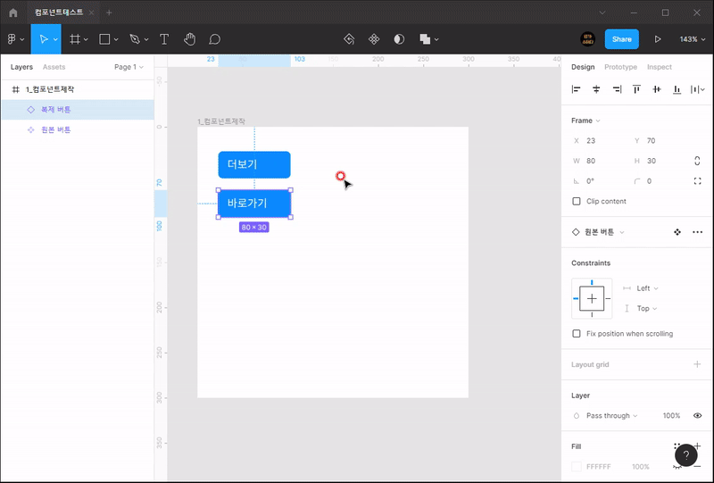 - 컴포넌트란 재사용 가능한 디자인을 등록해서 사용하는 것을 의미합니다.