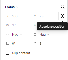 - 이때 [Absolute Position]아이콘을 누르면 Frame에서 벗어나지 않고도 위치 변경이 가능해집니다.