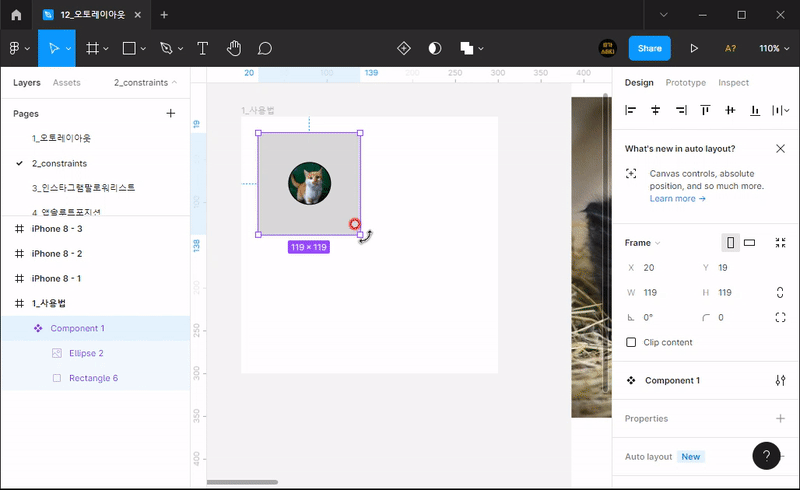 - 컴포넌트를 생성하면 사용할 수 있는 Auto Layout기능을 보도록 하겠습니다.