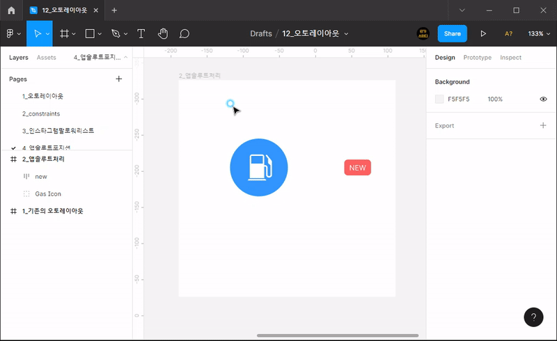 - [Design]패널의 [Auto Layout]을 활성화 시킵니다.