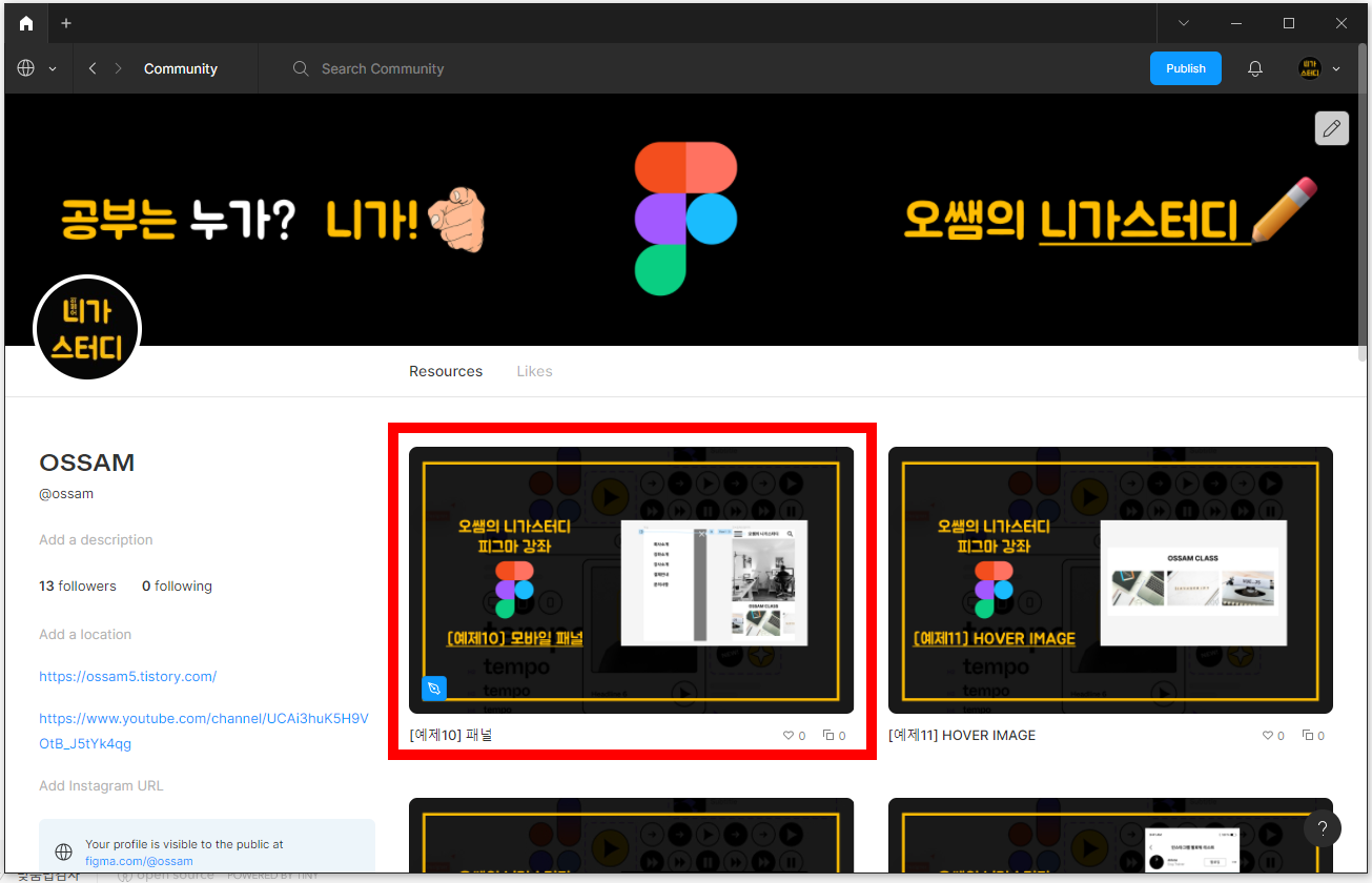 - [figma.com/@ossam]을 검색하면 찾을 수 있습니다.