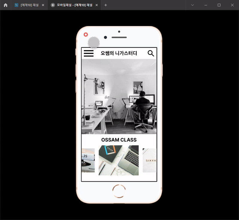 3) [예제10] 모바일패널을 더블클릭합니다.