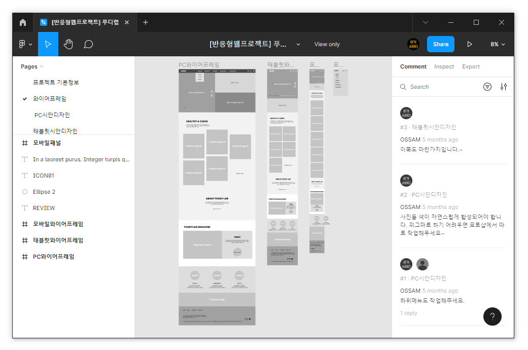 - 피그마가 협업에서 우위를 차지하게 된 기술은 공유와 코멘트입니다.