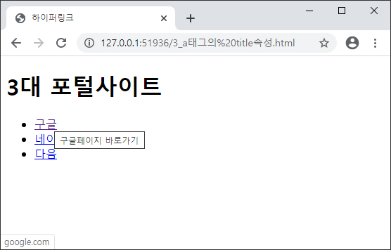 <li><a href="http://google.com" target="_blank" title="구글페이지 바로가기">구글</a></li>