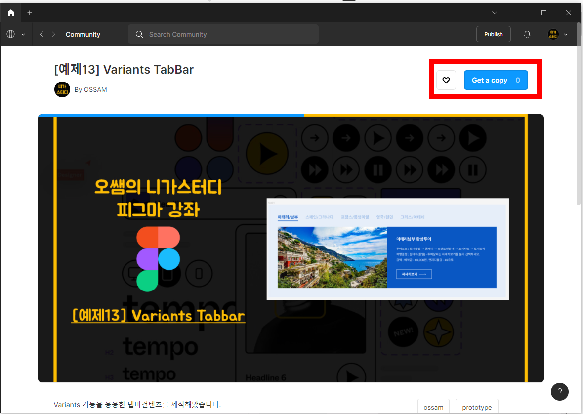 4) [Get a copy]버튼을 눌러 개인 작업창으로 복제해옵니다.