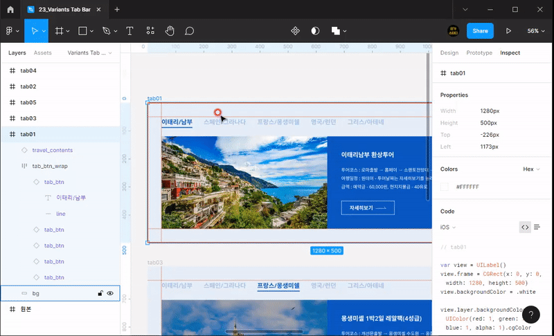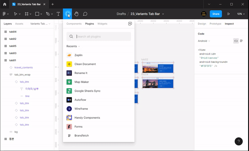 - 우측 상단에 있는 이름을 [Variants TabBar]로 변경해보겠습니다. 프로젝트 이름을 지정한 겁니다.