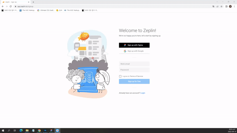 - [Sign up with Figma]버튼을 누르면 브라우저가 뜨면서 연결해줍니다.